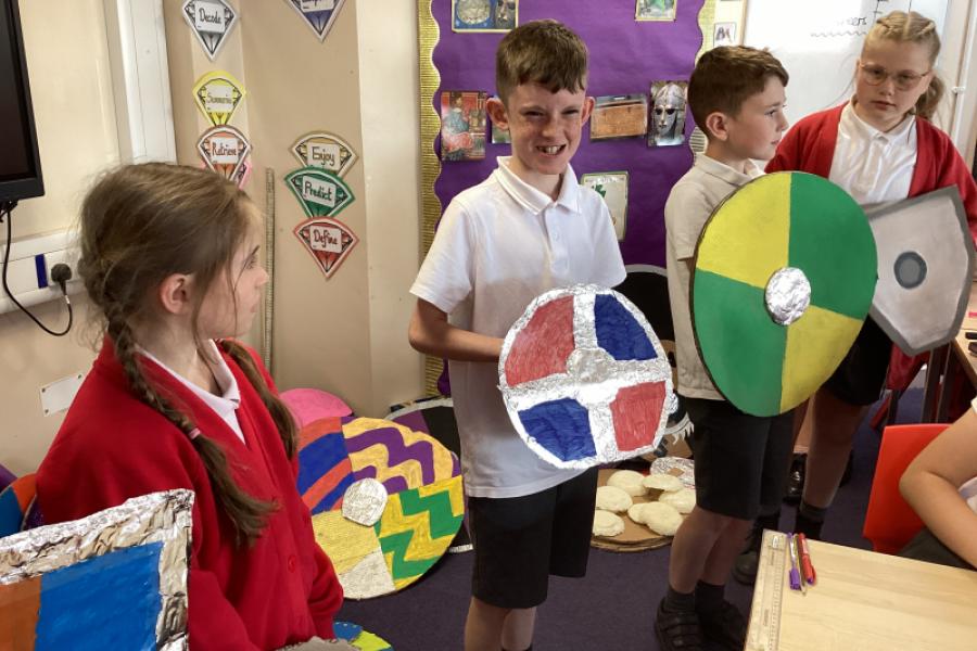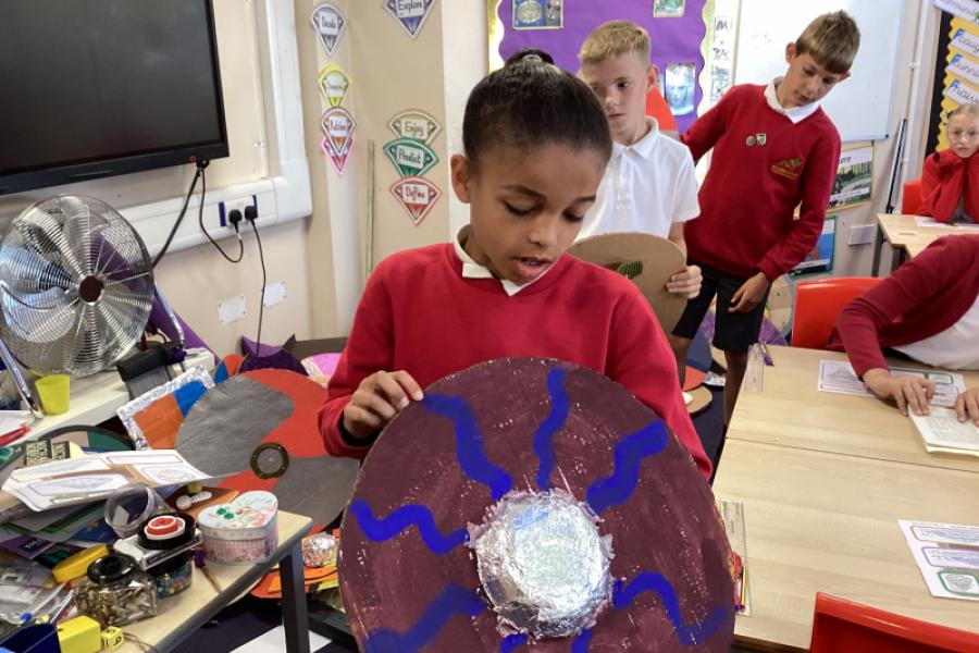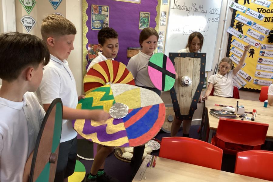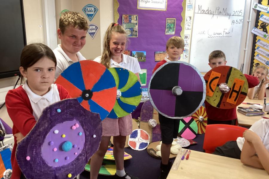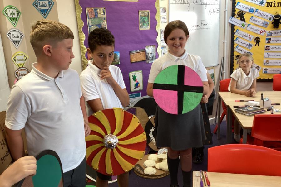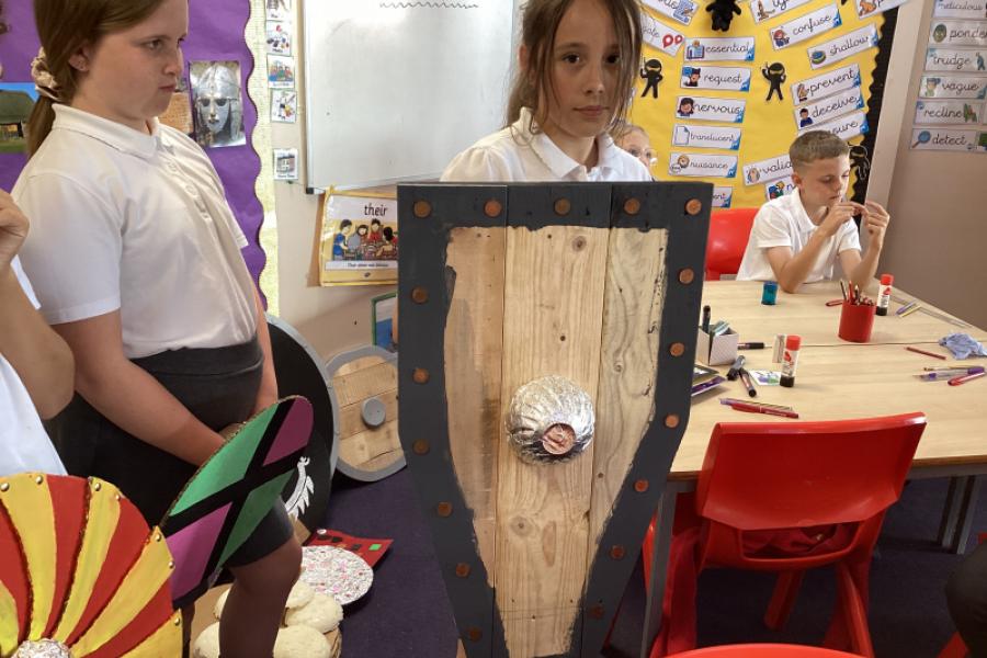 Year 5 excelled themselves last half term by creating their own amazing Anglo-Saxon shields! What an amazing array of shields! We even had a delicious shield cake which we shared with the class! After presentng their creations, we had some fun outside, makimg shield formations in groups! Our final task was to re-enact an exciting battle charge between two armies! I am pleased to say there were no injuries in the battle - we had great fun! Mrs Blomeley