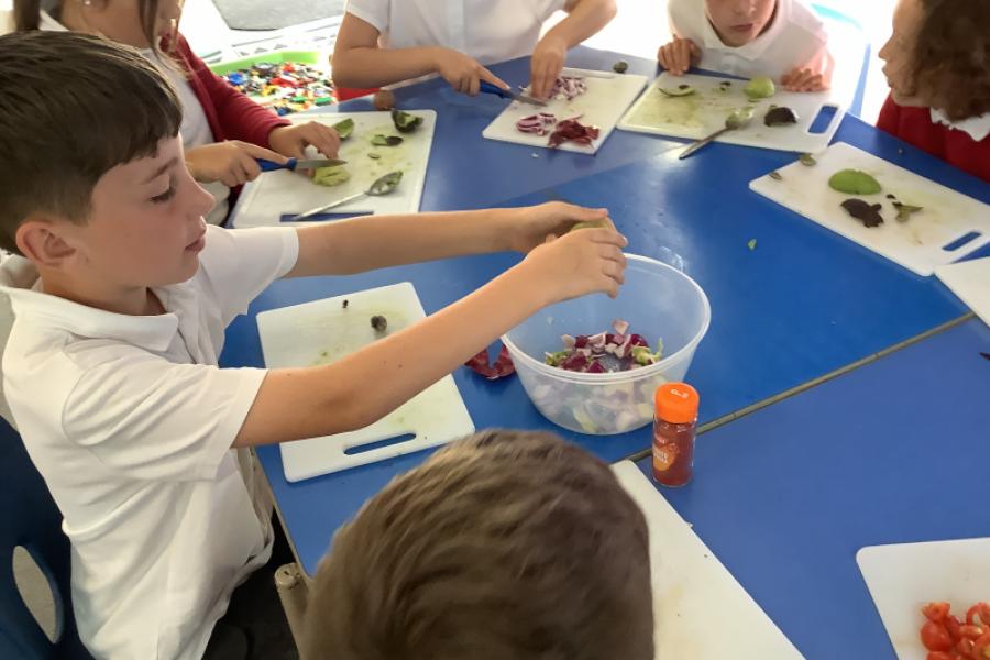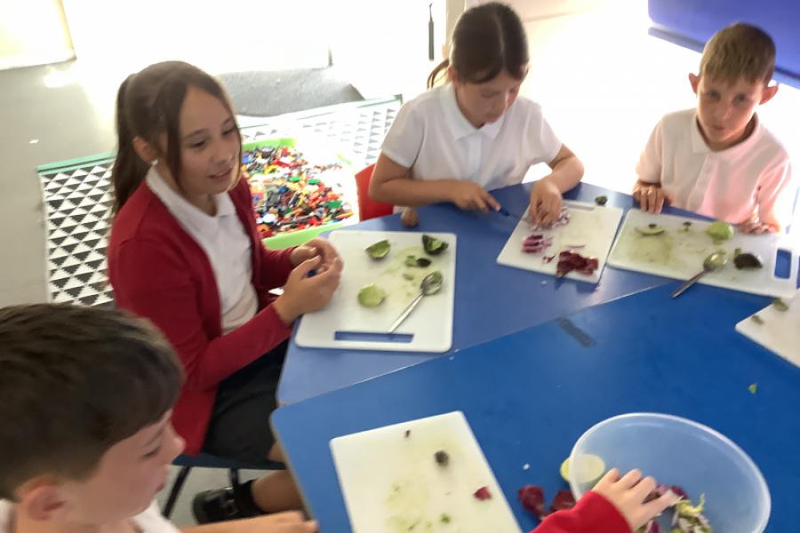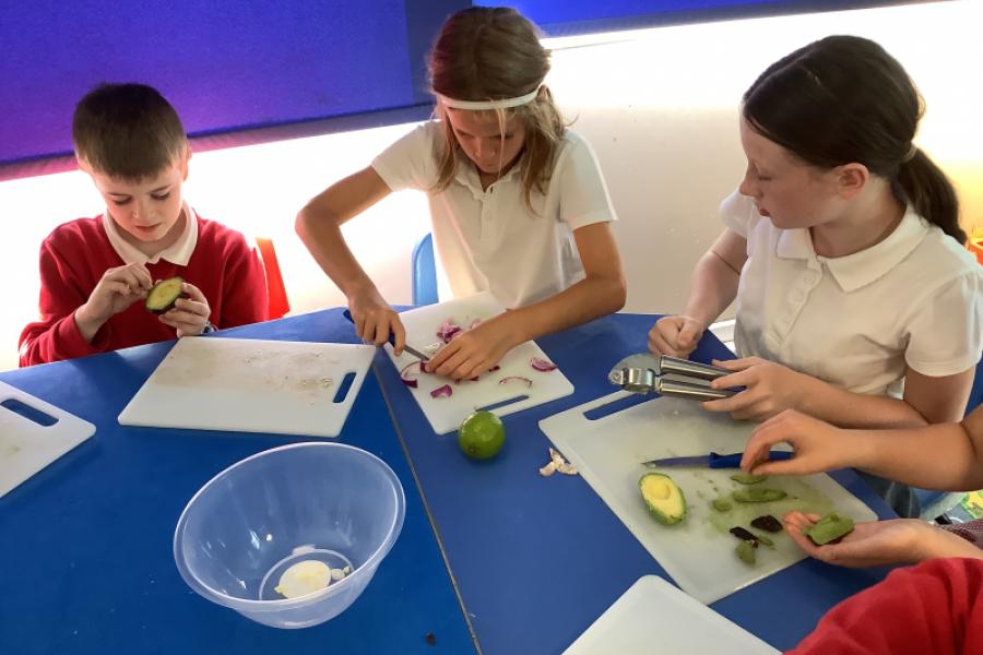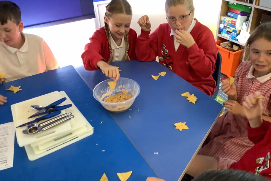 As part of their topic on South America, Year 5 had a great morning demonstrating their food technology skills to make Guacamole today! They used a variety of utensils, including a hand mixer, a garlic crusher, chopping boards and knives to make the "best Guacamole" ever, according to some groups!