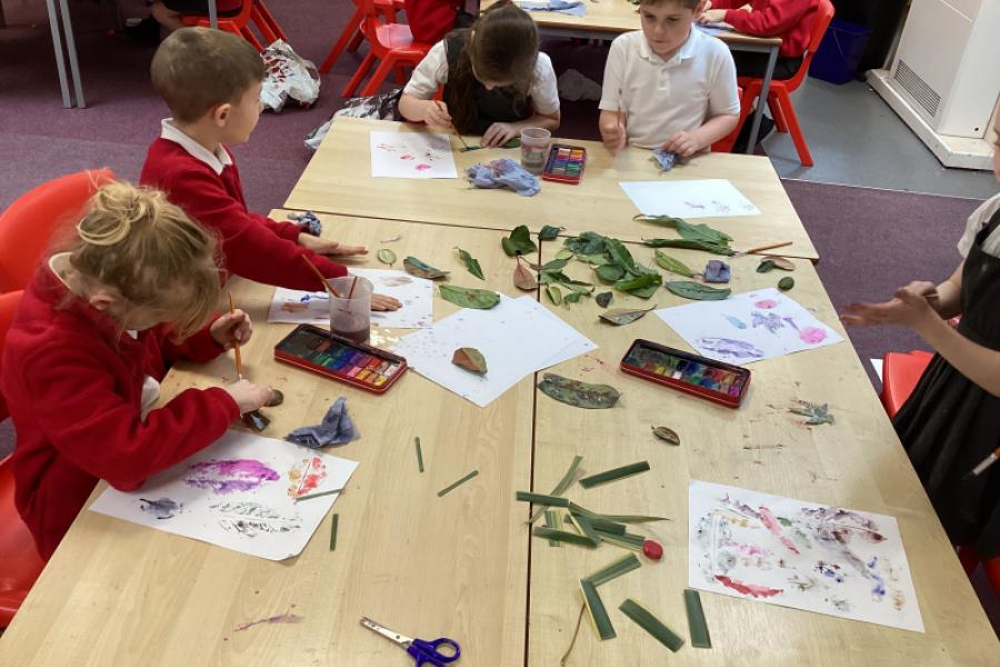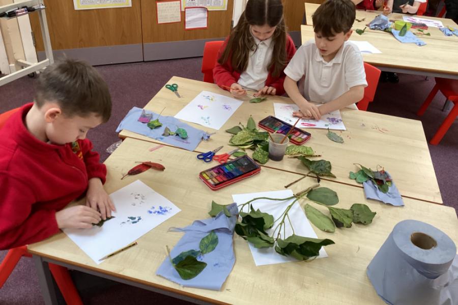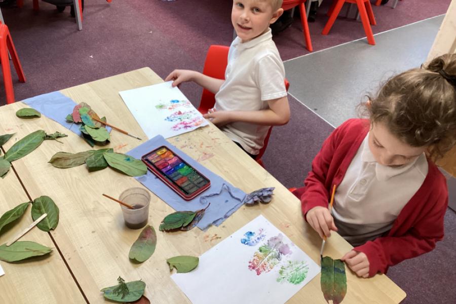Today in year 2, we created a printed piece of art by pressing, rolling and rubbing using leaves. How fabulous does our artwork look?