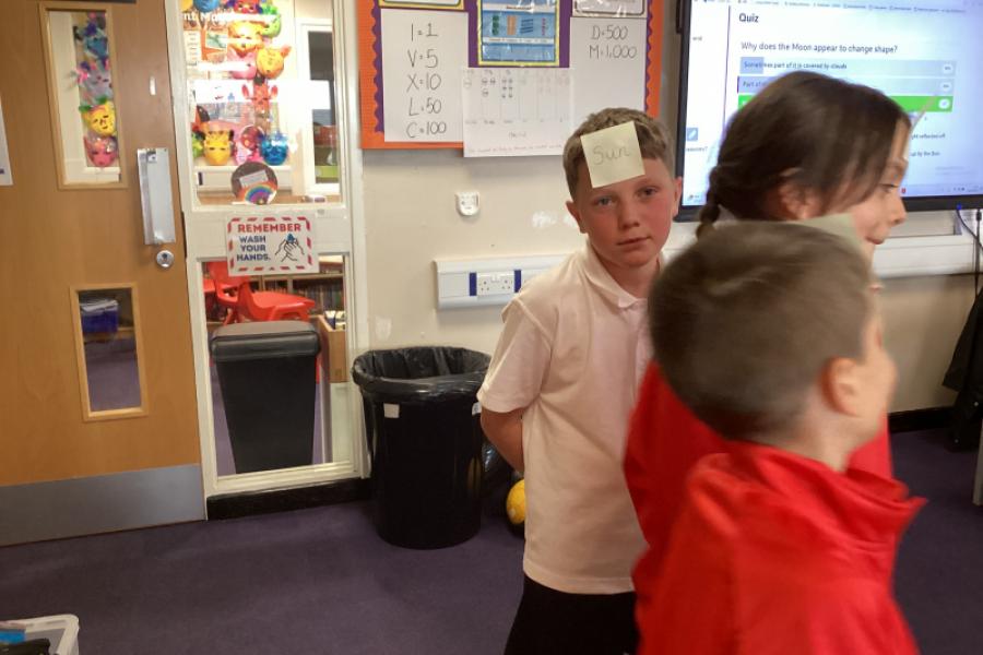 Some children demonstrated how the Earth orbits the Sun, and at the same time, the moon orbits the Earth!