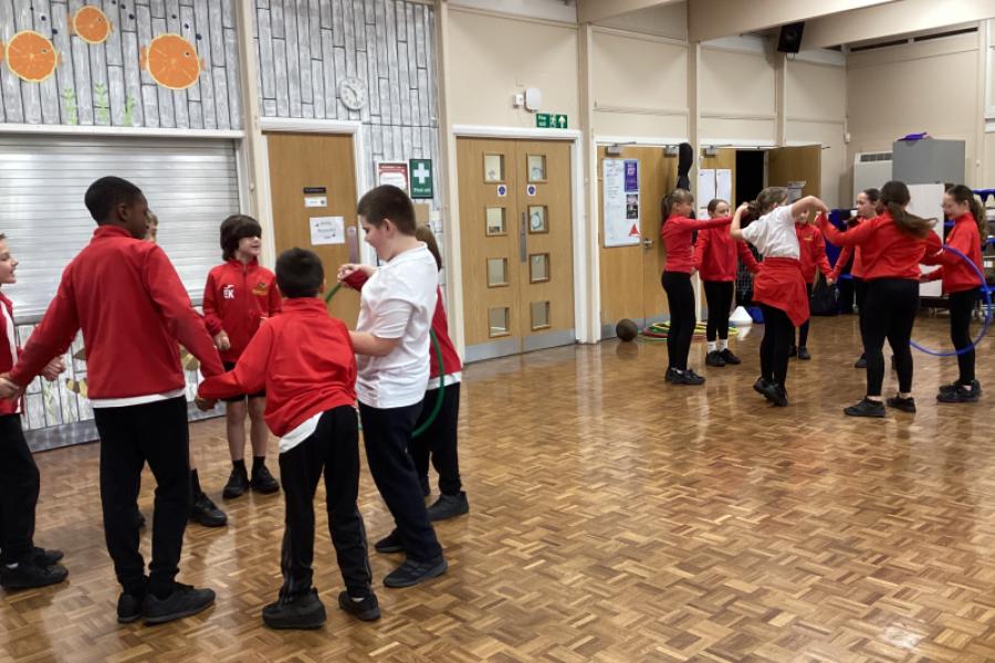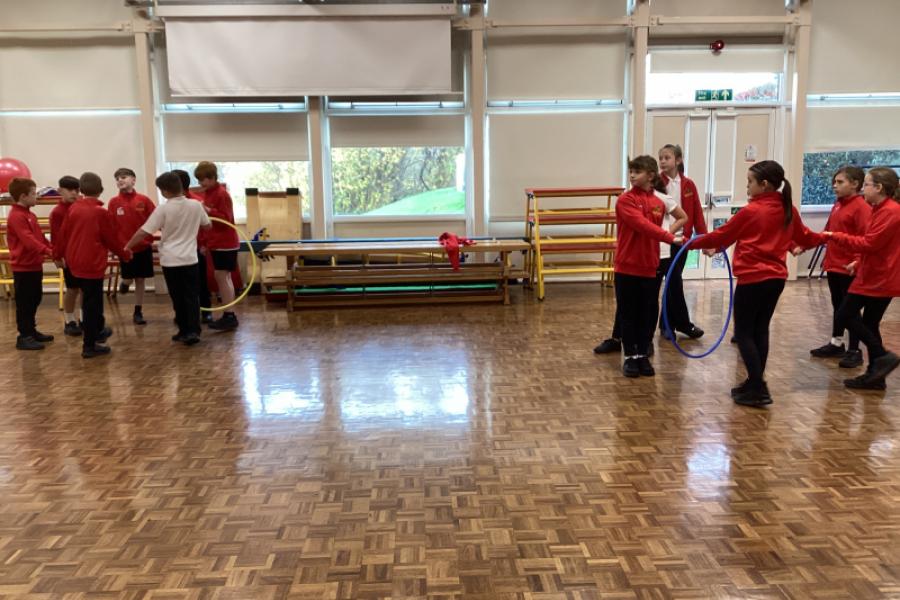 Year 5 have been using their communication skills and team work to complete team challenges in PE with our sports coach.