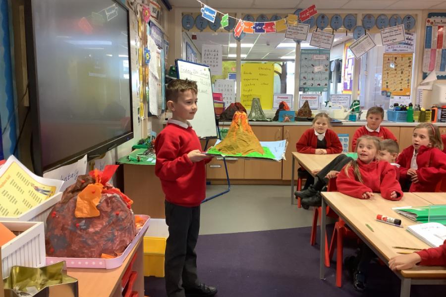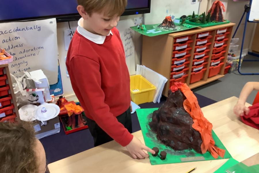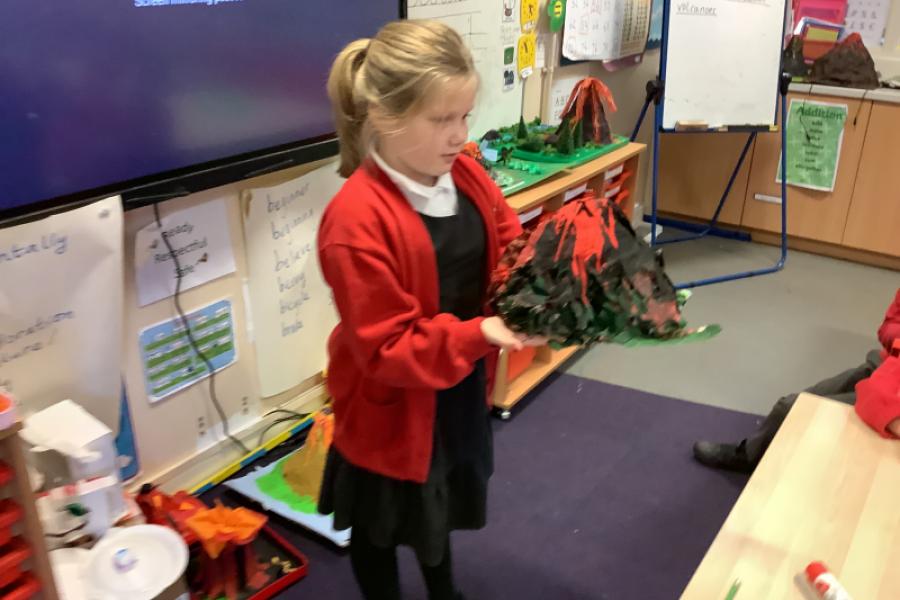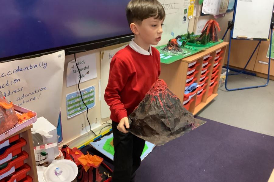 Our creative project in Year 3 this half term is a volcano model. The children worked really hard to creative some amazing models. We had smoking volcano, erupiting volcano and even a chocolate panettoni cake volcano. The cake looked and smelled delicious and we all wanted to eat it! The children practised their oracy skills when they shared their models and described the process of making them and materials they used.