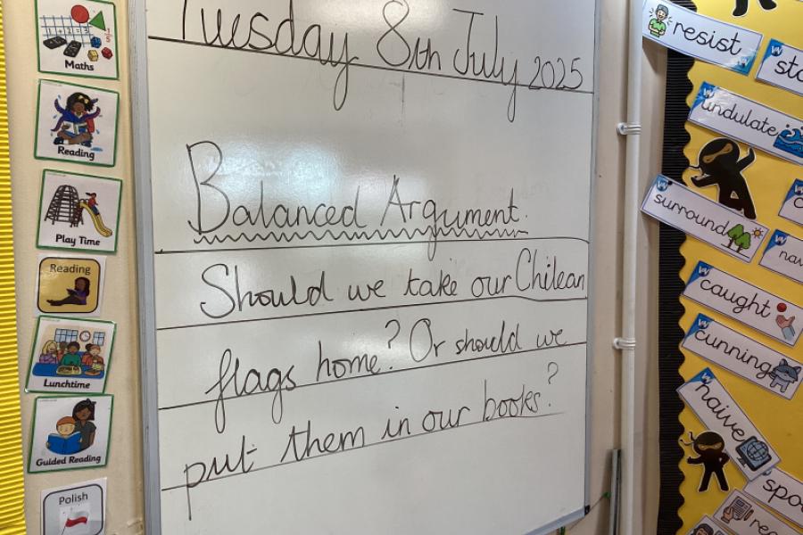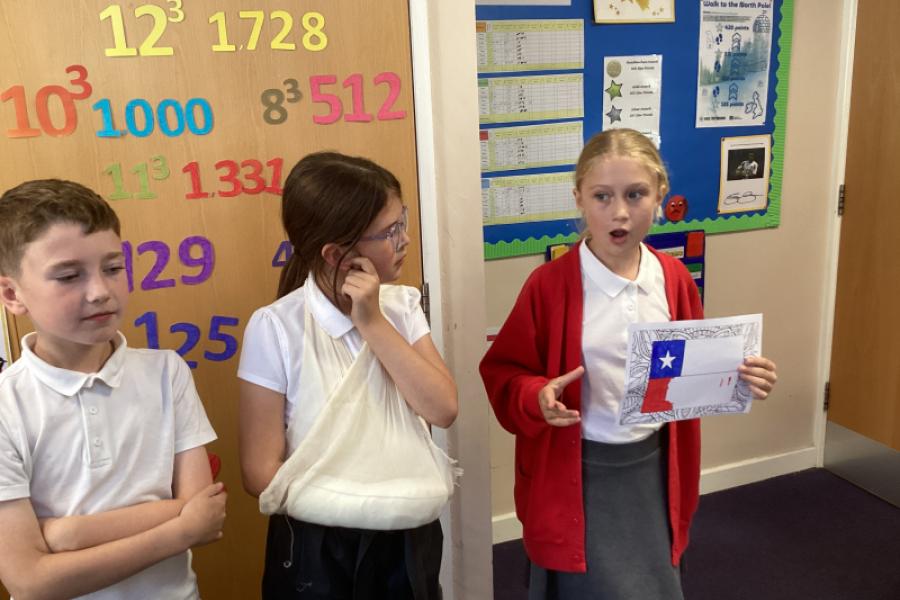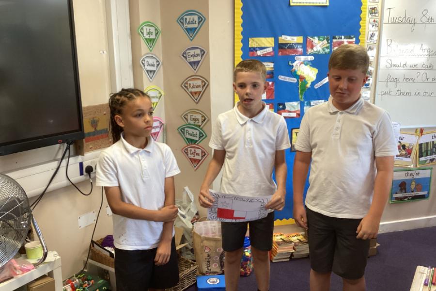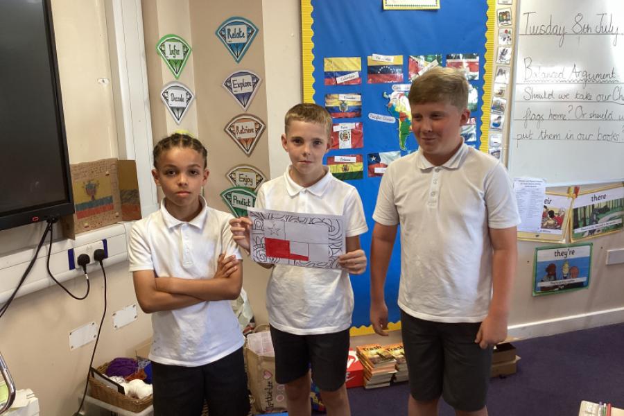 Year 5 wanted to demonstrate their ability to discuss balanced arguments today! Vinny had given the whole class a "Mindfulness" Chilean flag to colour, as part of his South American project presentation The question was, should they take it home? Or should they stick it in their Geography books? The group with the better arguments won! They used their "for and against" skills to convince the class to put them into their books! Well done everyone for taking part! Mrs Blomeley