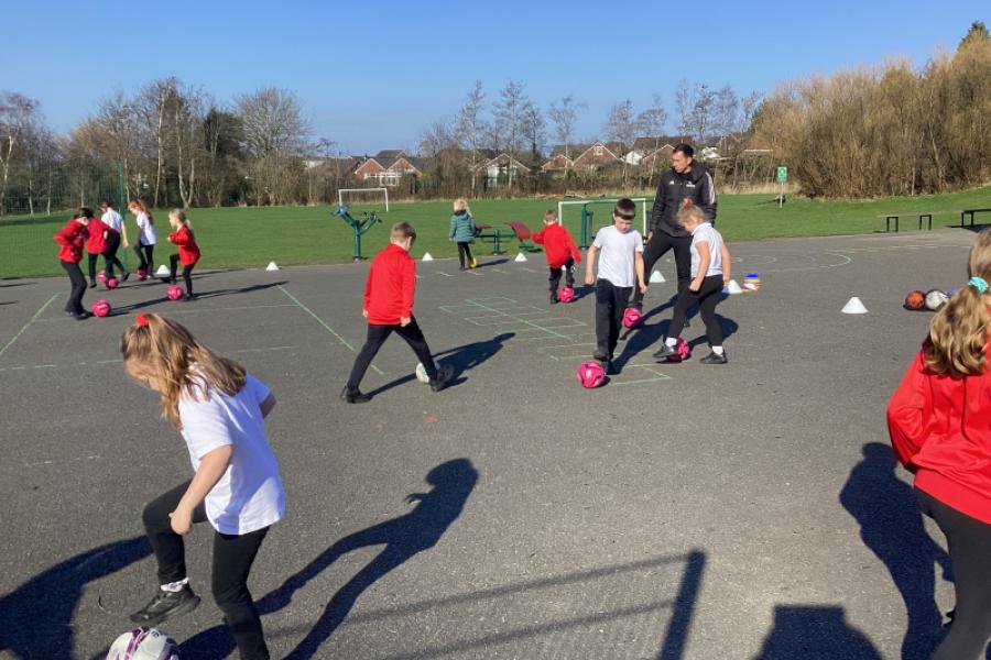 The sun came out today for year 3 to practise their dribbling skills with Mr Williams.