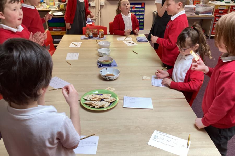 The children in Year 4 have really improved their culinary skills over the last 2 weeks whilst they followed a Tudor pottage recipe. The children to plan, peel, chop, dice and mix different vegetables to make their pottage, adding herbs and relishes to taste.They eventually made 5 different types of pottage: a leek and onion pottage, a carrot and leek pottage, a swede pottage, a swede and leek pottage and a spinach pottage. They all had the chance to taste test each soup and rate them. Their overall favourite was the leek and swede pottage made on Tuesday. Fantastic work Year 4.