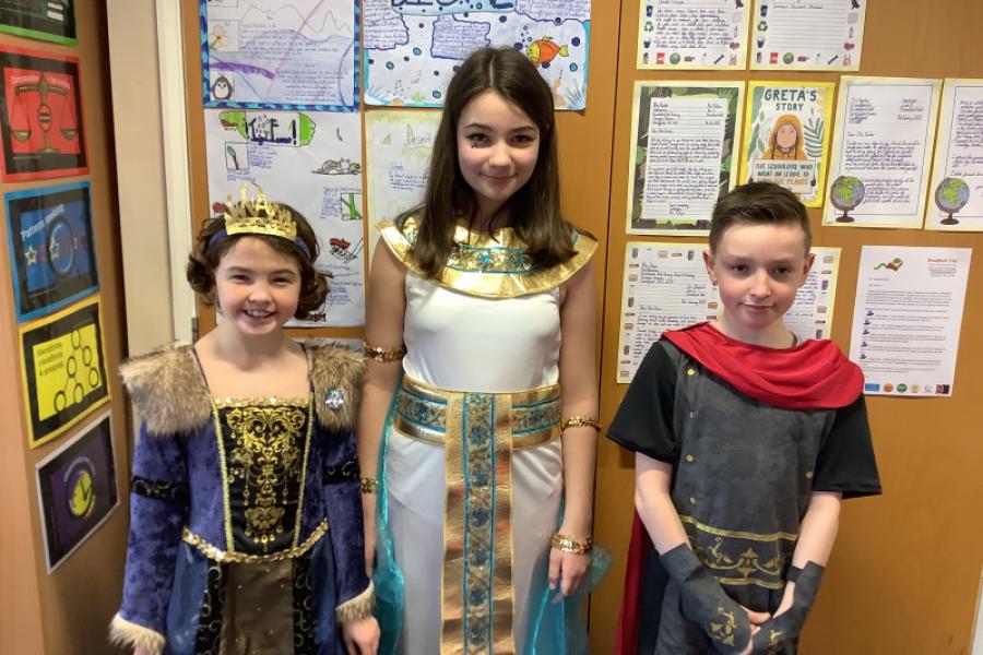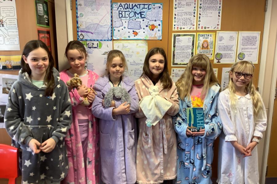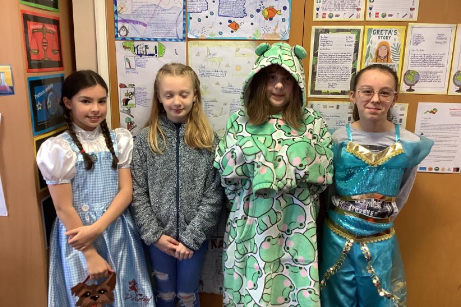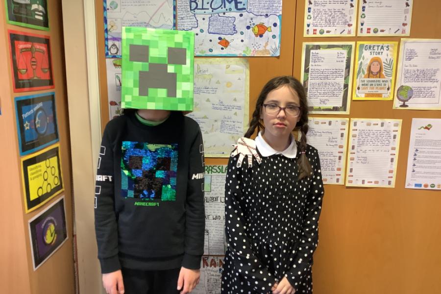 Year 5 arrived in Year 5 yesterday with such an array of their favourite book characters! Important people from history such as Cleopatra, Julius Caesar and Queen Anne joined in with a variety of "Sophies" from Roald Dahl's The BFG and characters from Harry Potter! Surprise visits from "Wednesday Adams" and the "Minecraft Creeper" figure, together with girls from the "Dork Diaries", two footballers, the boy from "Lost and Found","Dorothy and Toto" from The Wizard of Oz, "Super Ted", "Willie Wonka", "Princess Jasmine", "Frog Girl", "Winne the Witch", and "Alex Ryder" completed the cla