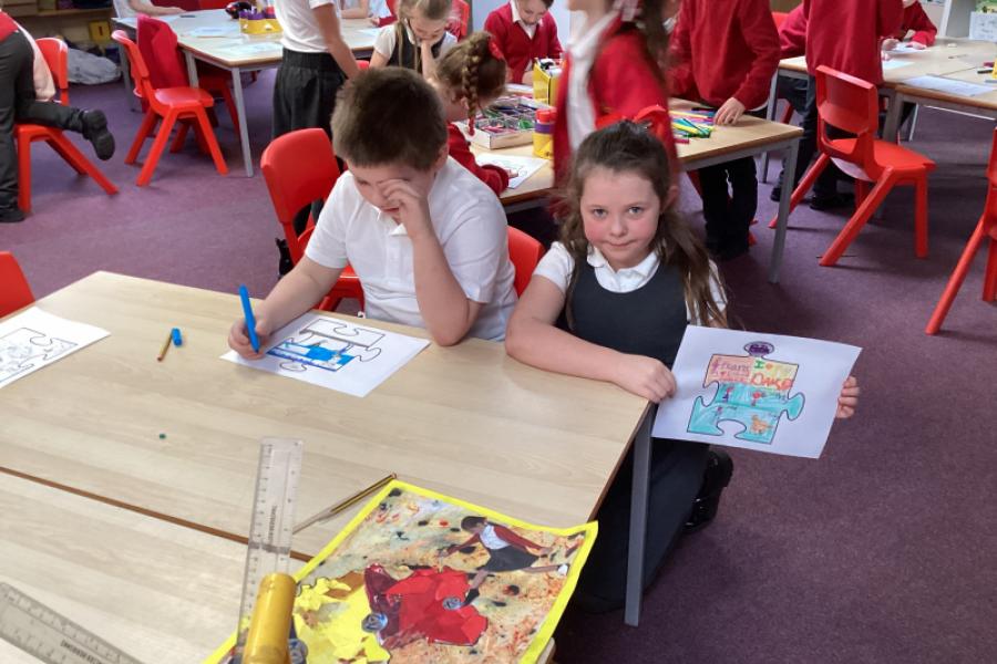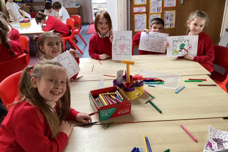 This week is Children’s Mental Health Week. The theme of the week is connecting. We talked about the different ways that we are connected to each other in Year 2 . Then the children decorated a jigsaw piece to show how they are connected. They all came up with some fabulous ideas! We are going to make a giant jigsaw with the pieces to show how we are all connected. Fantastic ideas and super art work! Well done everyone!