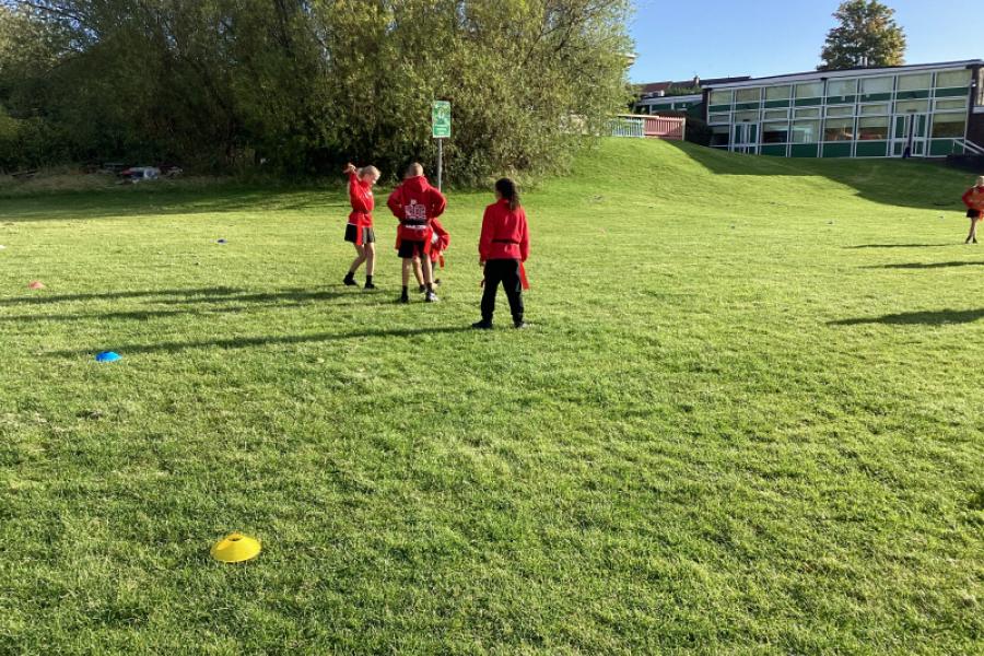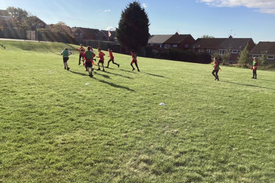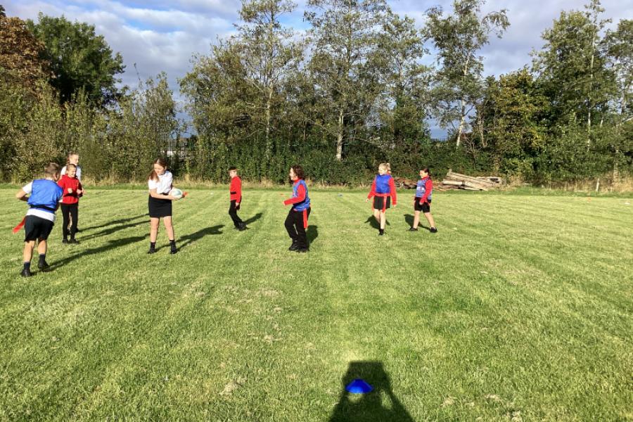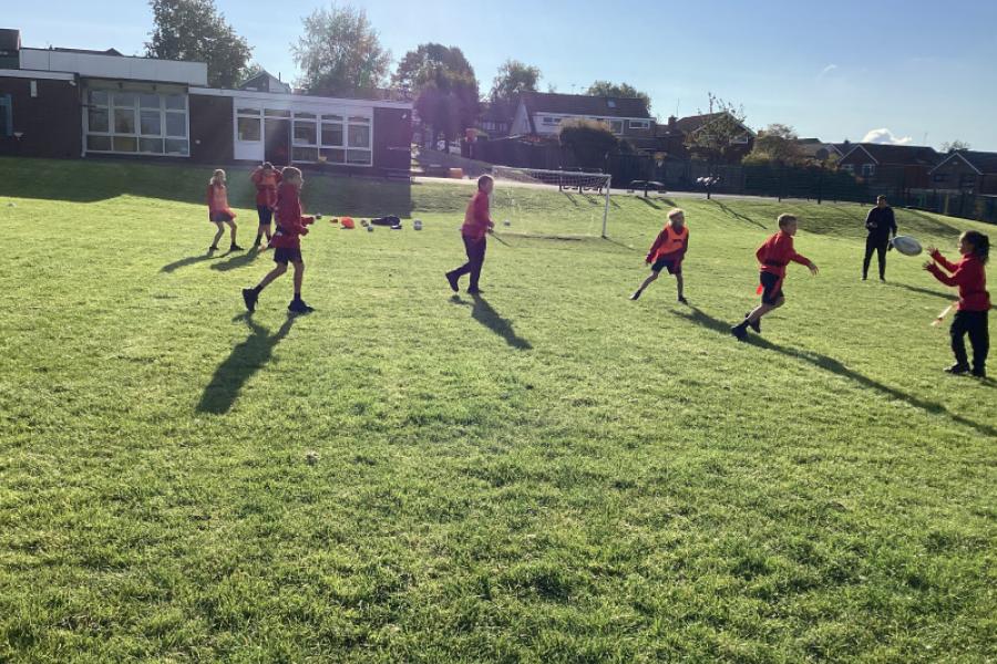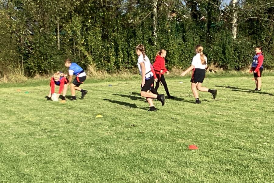 Today, Year 6 played tag rugby. For the warm up, they were passing to each other. For the main part of the PE lesson, they played small games and it was very intense and fun .
