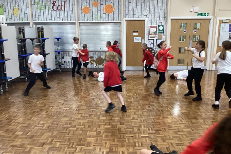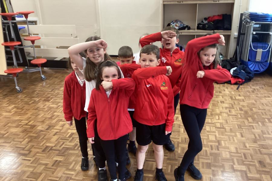 Year 4 were Roman soldiers for the day today! They marched around the hall shouting 'Sin Dex Sin' whilst carrying all their heavy equipment and attempted to make a range of battle formations including the testudo. They then had to apply what they had learnt to try to defeat the Celts.