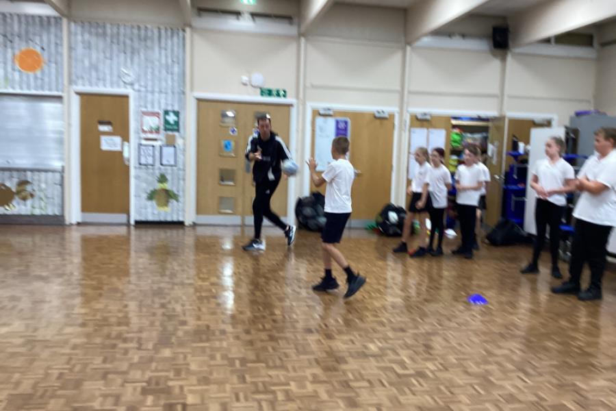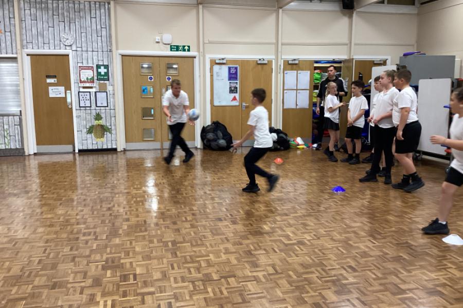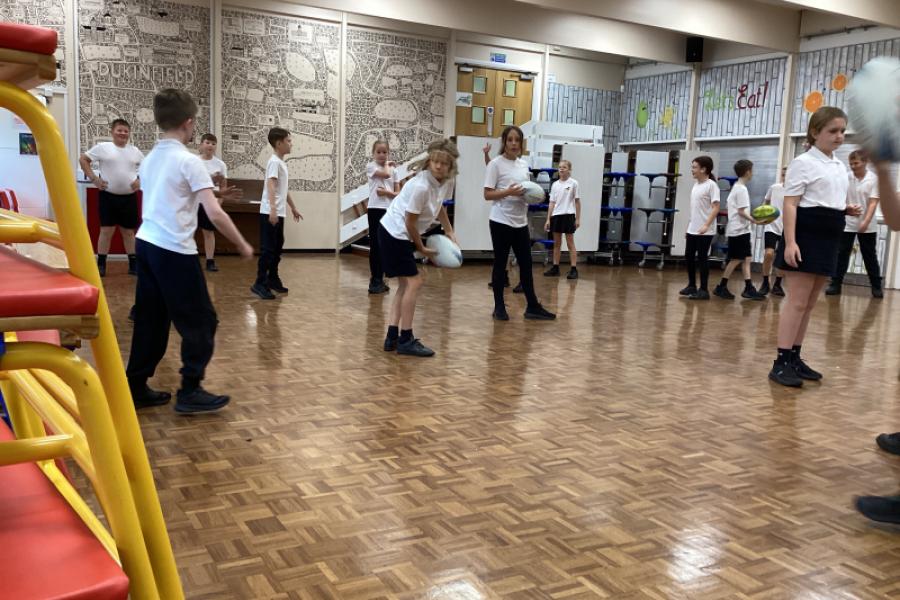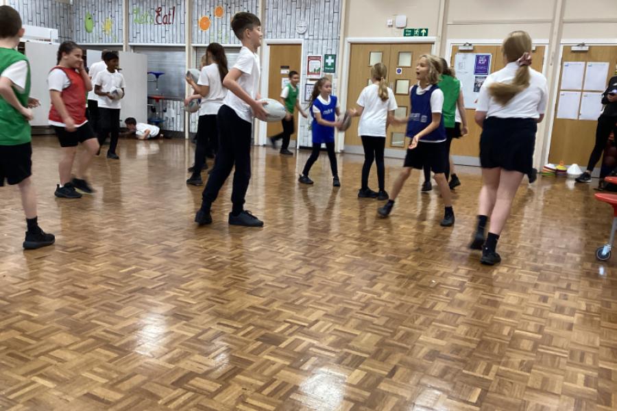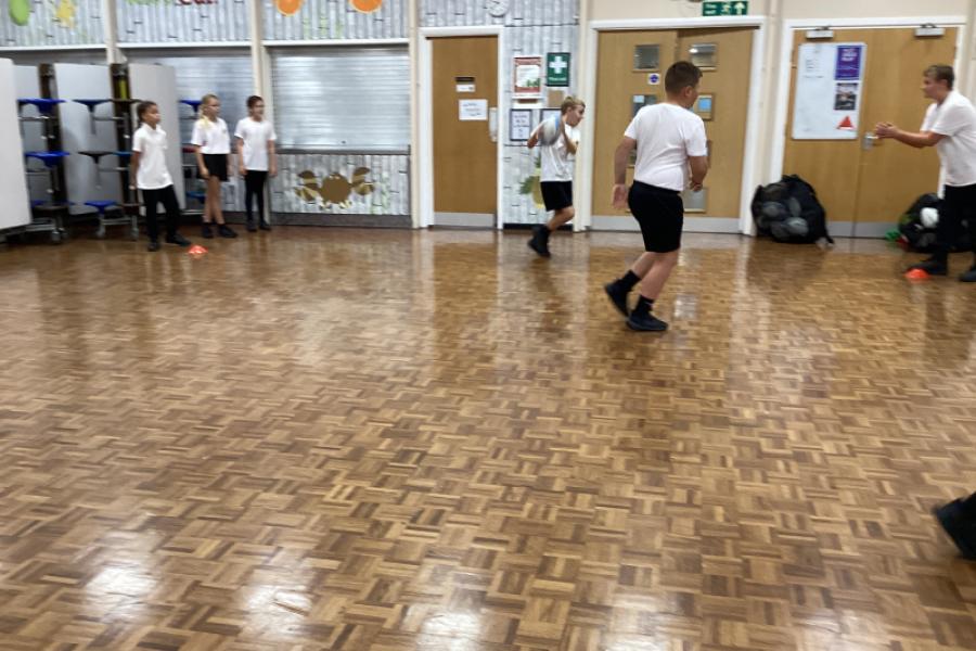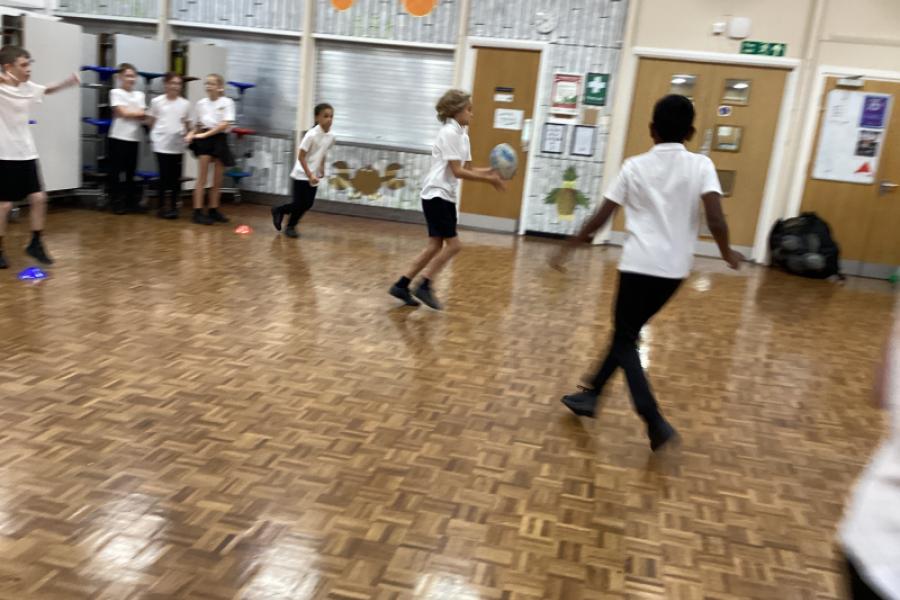 Today, Year 6 were working with Mr Williams practicing their rugby skills. Even though it's raining outside, Year 6 were very active.
