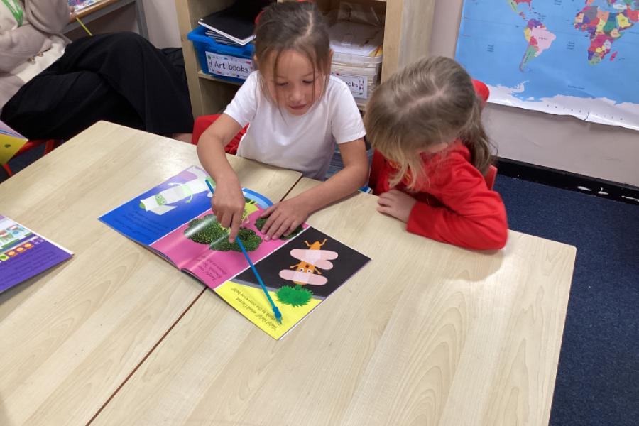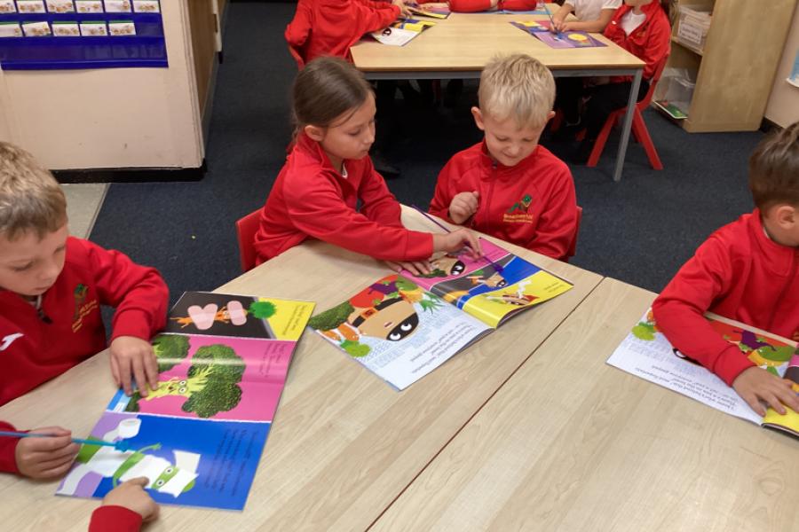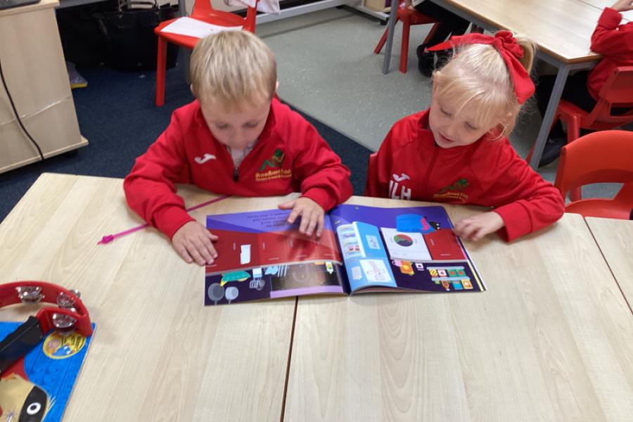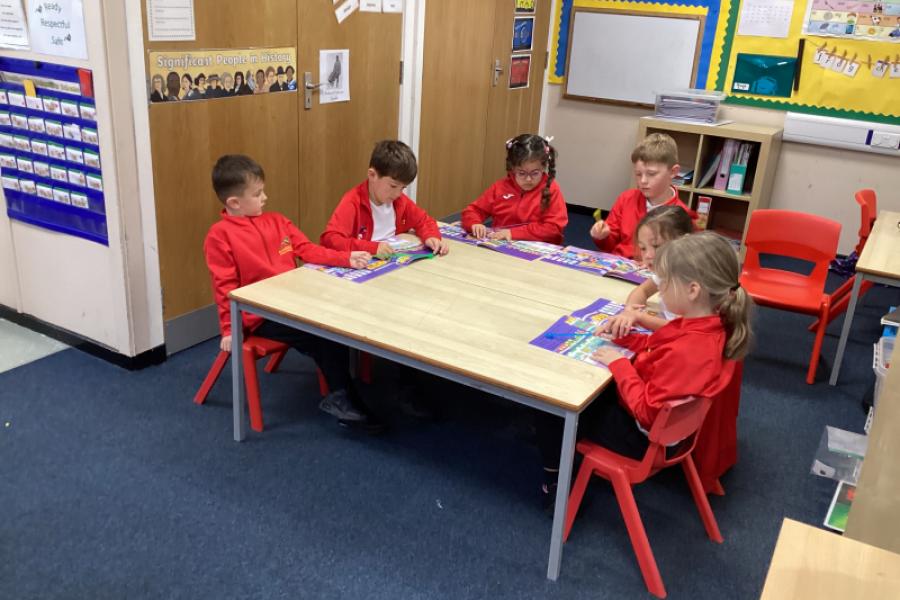 Today our first group of Reading Ambassador held a Library club at lunchtime. They enjoyed reading books with other children.