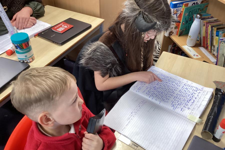 As part of National Storytelling week, Soundtrack Your Story, Year 6 wrote Vikings Sagas inspired by Richard Wagner's Ride of the Valkyries. They shared their stories with their Y1 buddy readers on our Viking Dress up day and the children were astounded.