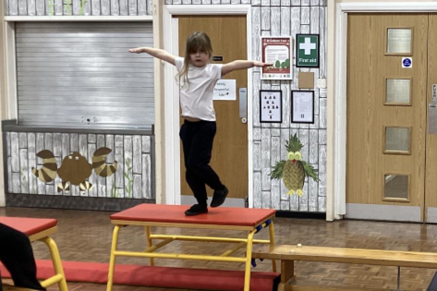 In PE Year 1 used their gymnastics skills to develop a sequence on the equipment.