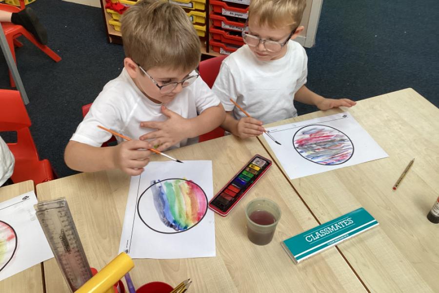 We have been exploring using watercolours to create our own planet to celebrate Science week.