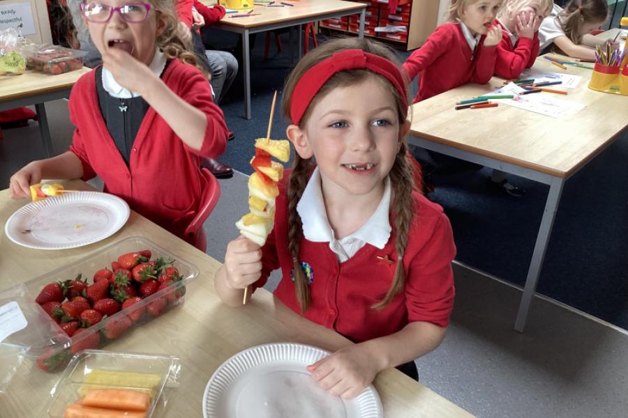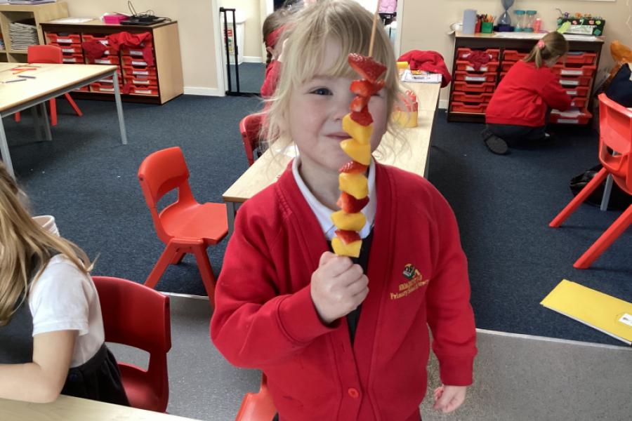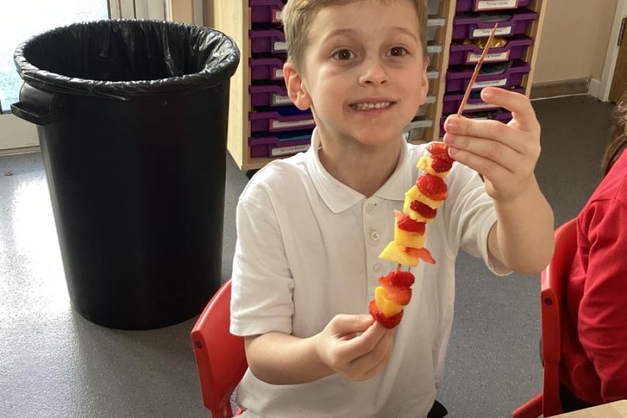 Year 1 had lots of fun in DT this week where they researched lots of different types of fruit and designed their own fruit kebabs using a repeated pattern. They then used their cutting skillls to chop the fruit and make their fruit kebabs. Their favourite bit was definitely eating them and some of them even tried some new fruit for the first time too!