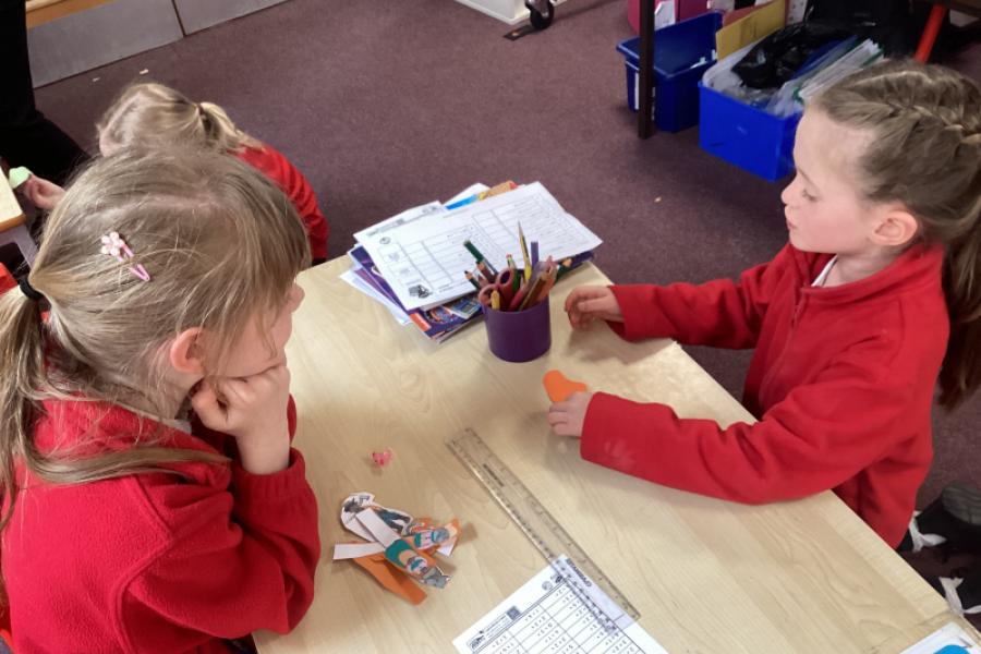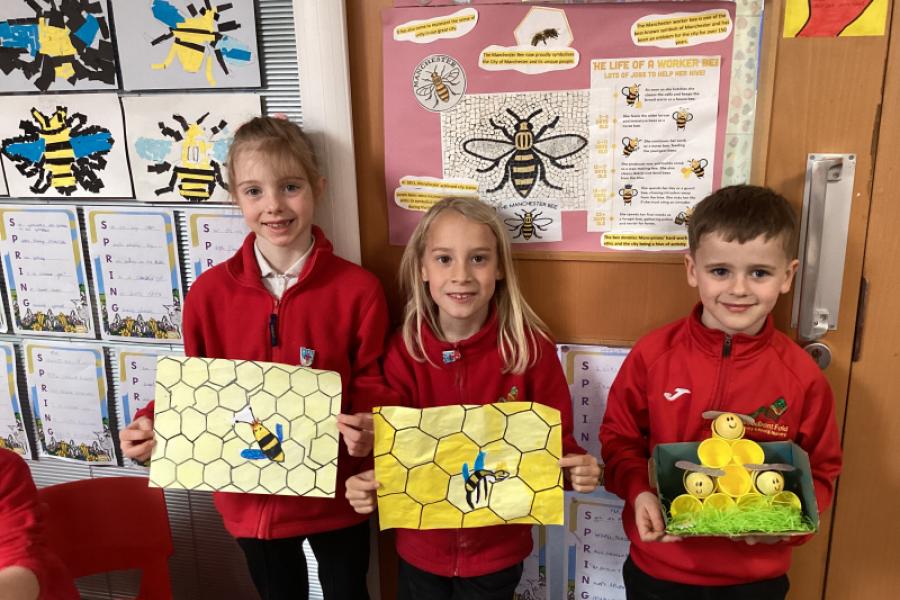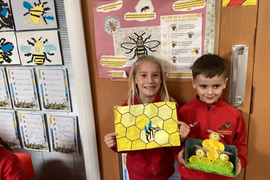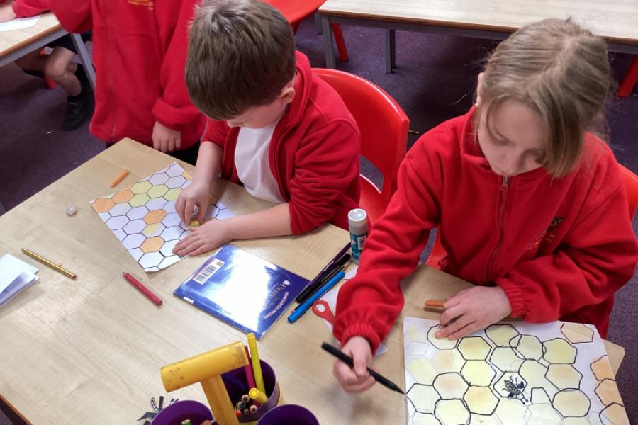 Children looked at shapes linked to bees, they decided that hexagons would be the best shape to use in their art work.