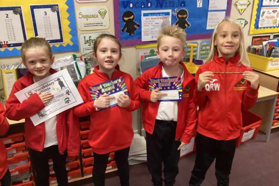 A big well done to these Year 2 children who received their awards today. Headteacher's certificates were awarded for excellent behaviour and effort. We also had two Good to be Green lottery winner.