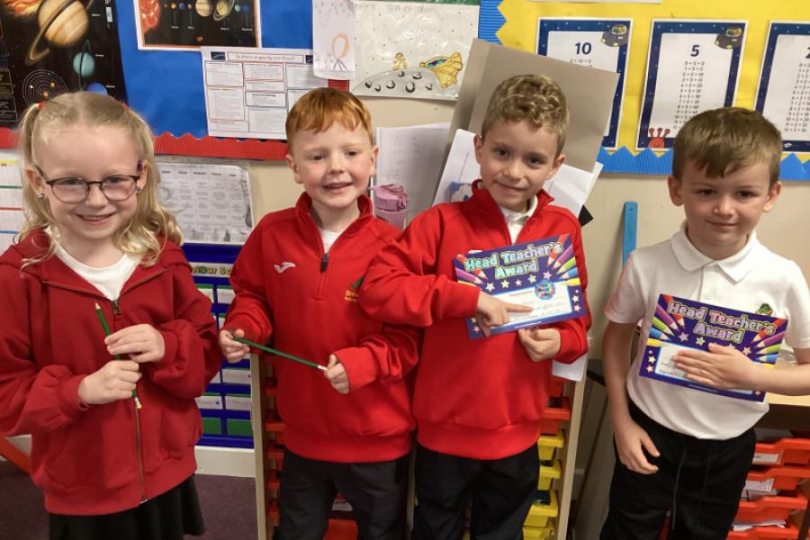 Congratulations to these Year 2 chil who received their awards this week. Headteacher's certificates were awarded for writing ideas and excellent effort in all subjects. We also had to Good to Green lottery winners. Well done!