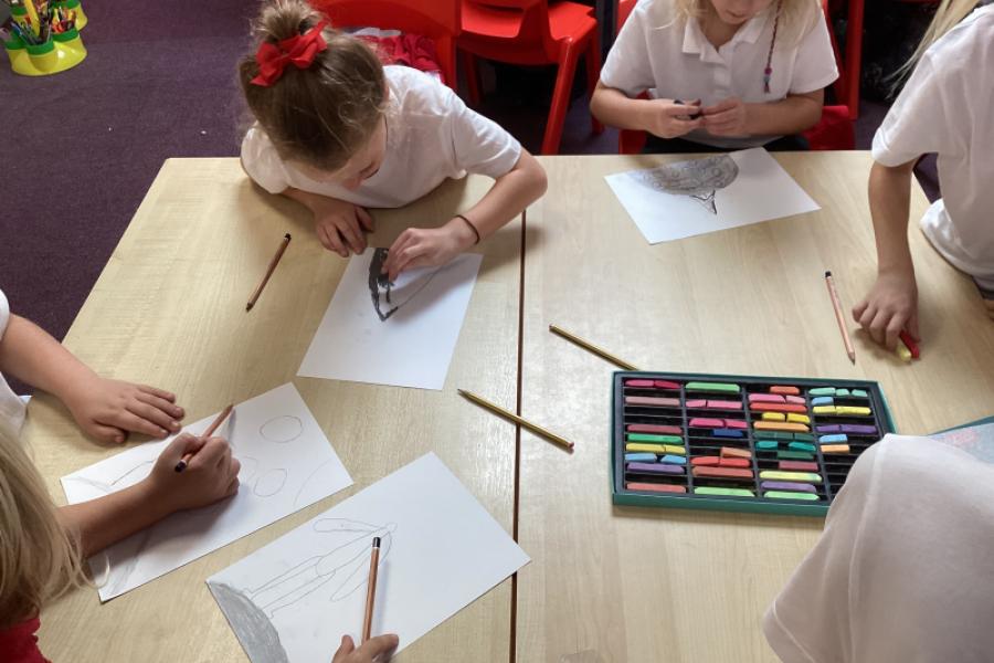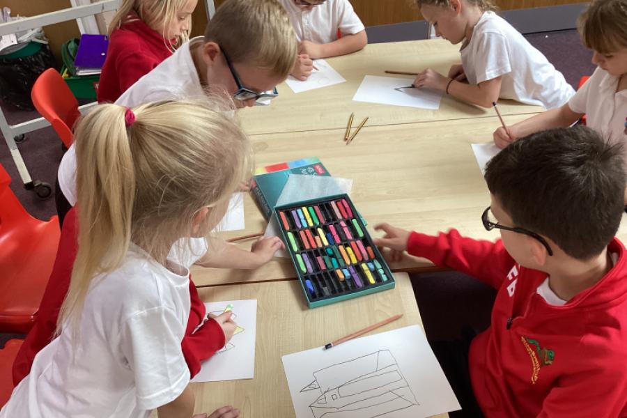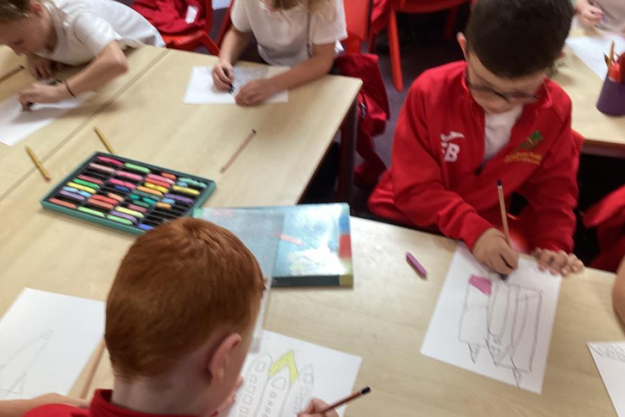 Art using pastels, children enjoyed creating pictures in the style of Andy Warhol.