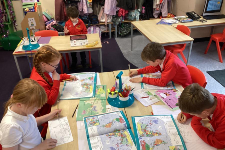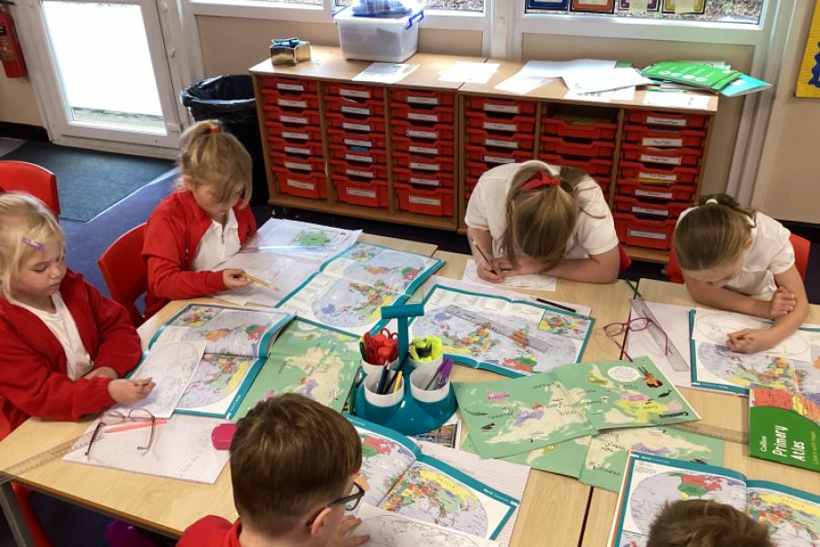 We have been using atlases to help us locate places in the UK, Europe and the Northern and Southern hemispheres in geography work.