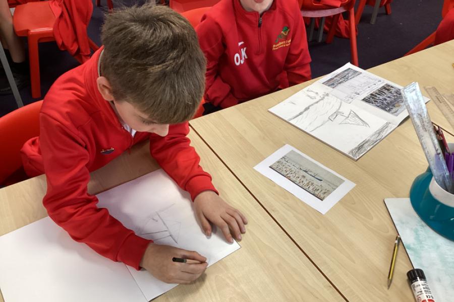 Year 3 started to explore the works of Lowry yesterday looking at some of his famous paintings, having a go at sketching and colour mixing.