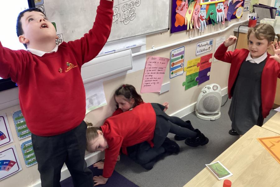 Today we used Freeze Frame to reenact scenes from our text 'The pebble in my pocket' thinking about what was happening on earth millions of years ago.