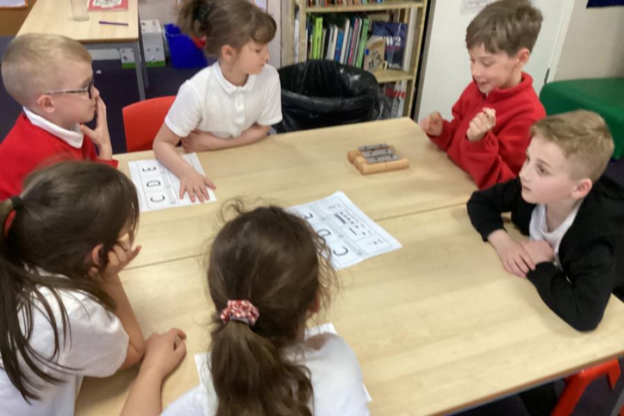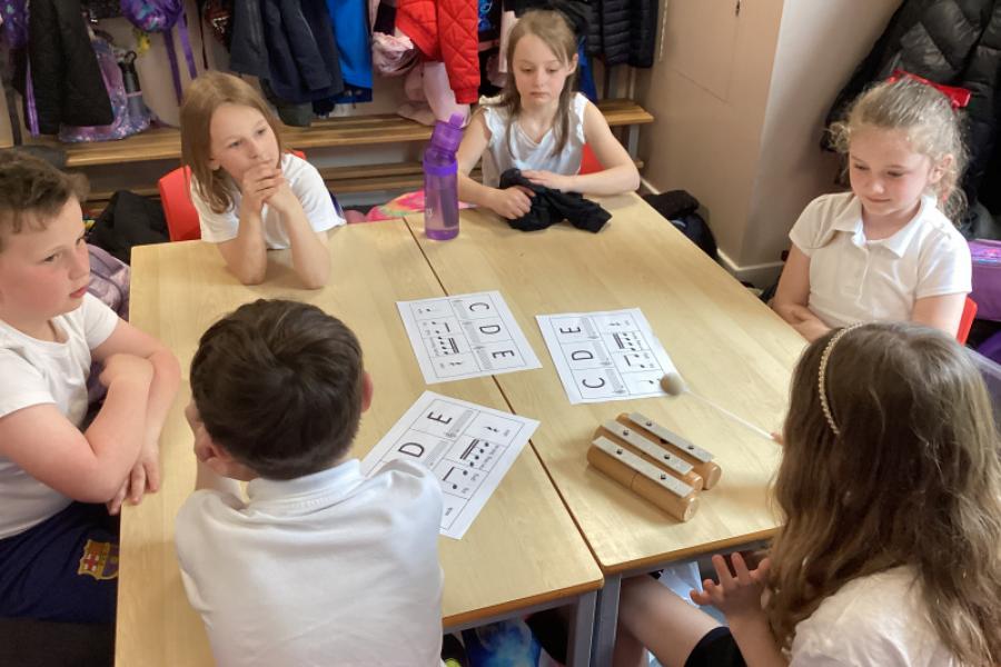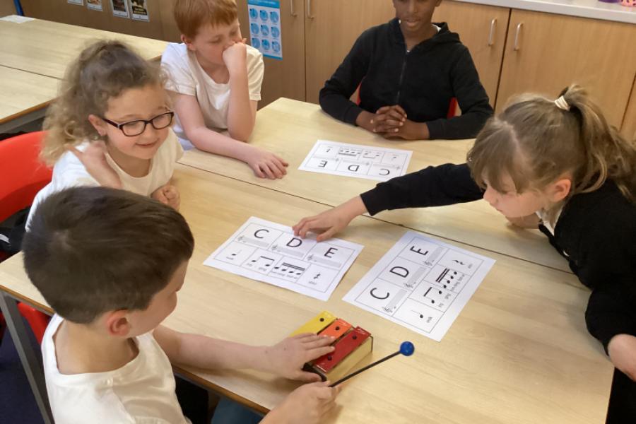 Year 3 were familiarising themselves with the notes C, D and E on the chime bars.
