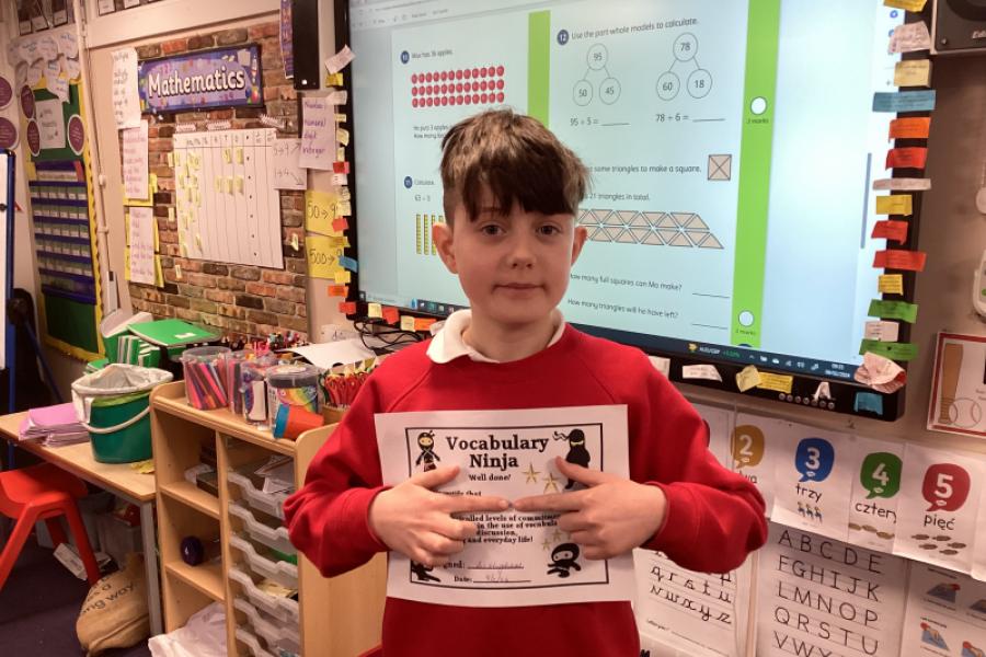 Nursery- Josef, Reception- Oli, Y1- Minnie, Y2- Aston, Y3- Marshall, Y4- George, Y5- Evie-Mae, Y6- Eva