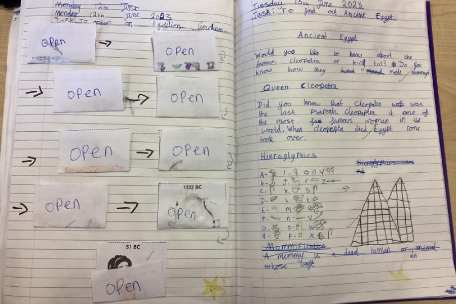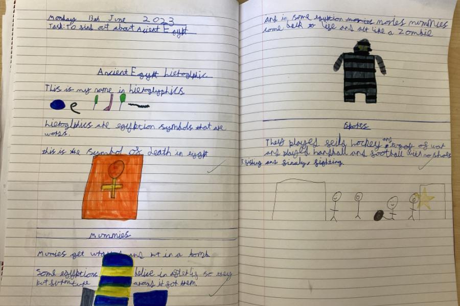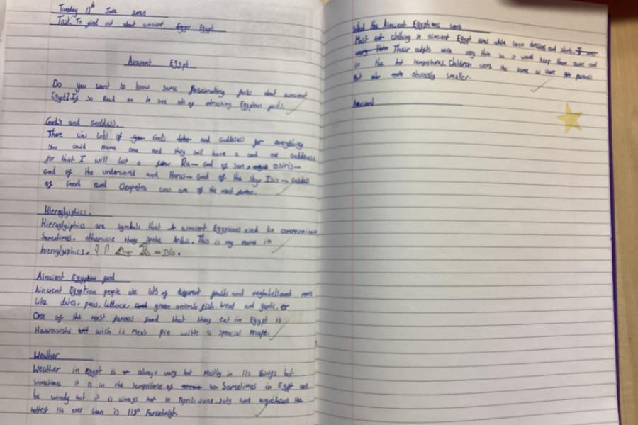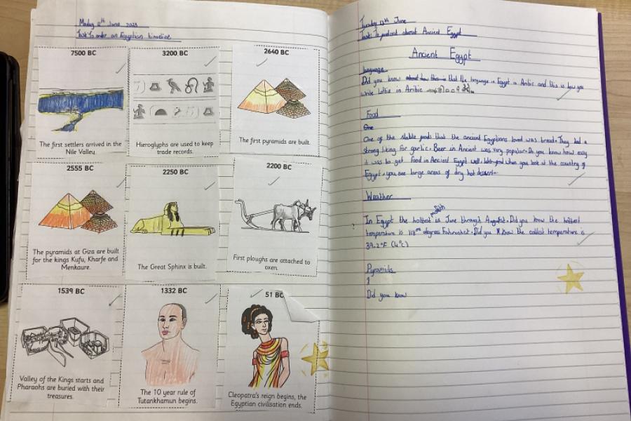 Year 4 have thoroughly enjoyed finding out about the Egyptians. They used non-fiction books and iPads to research and loved finding out about pharaohs, pyramids, treasure, location, hieroglyphics, the River Nile, Tutankhamun and Cleopatra. I'm sure you'll agree how fantastic their work looks.