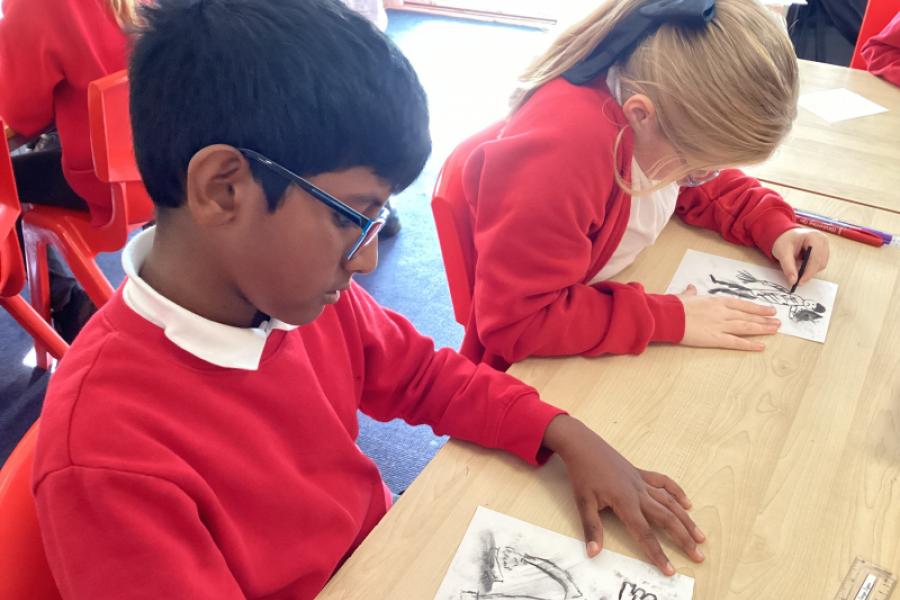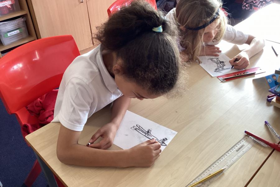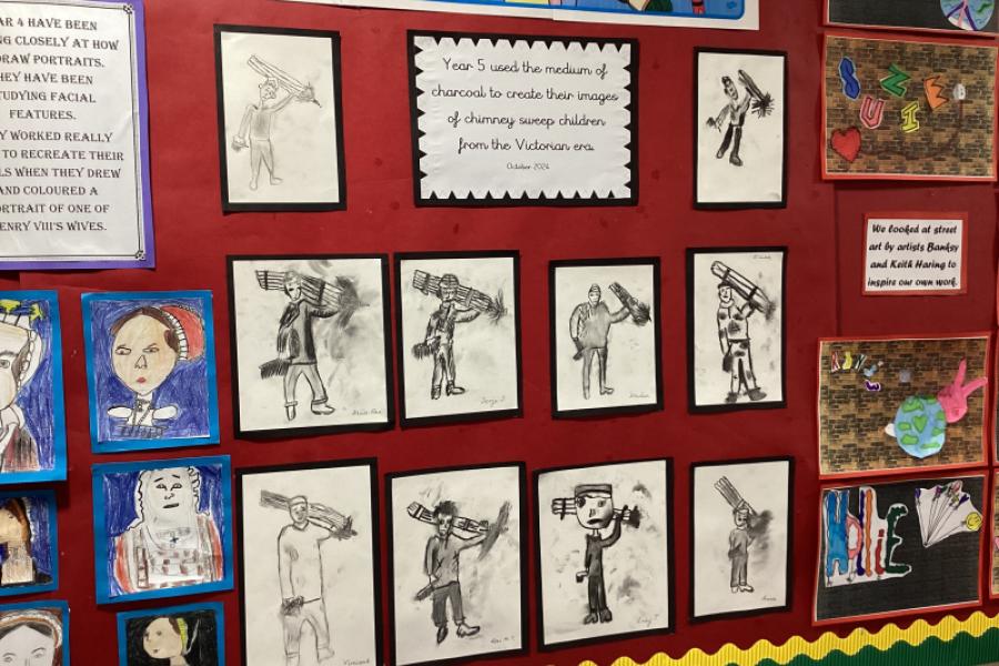 Year 5 sketched some great chimney sweeps in their sketch books, then used the medium of charcoal to create amazing pictures for their Victorian display! Fantastic artwork Year 5! Mrs Blomeley