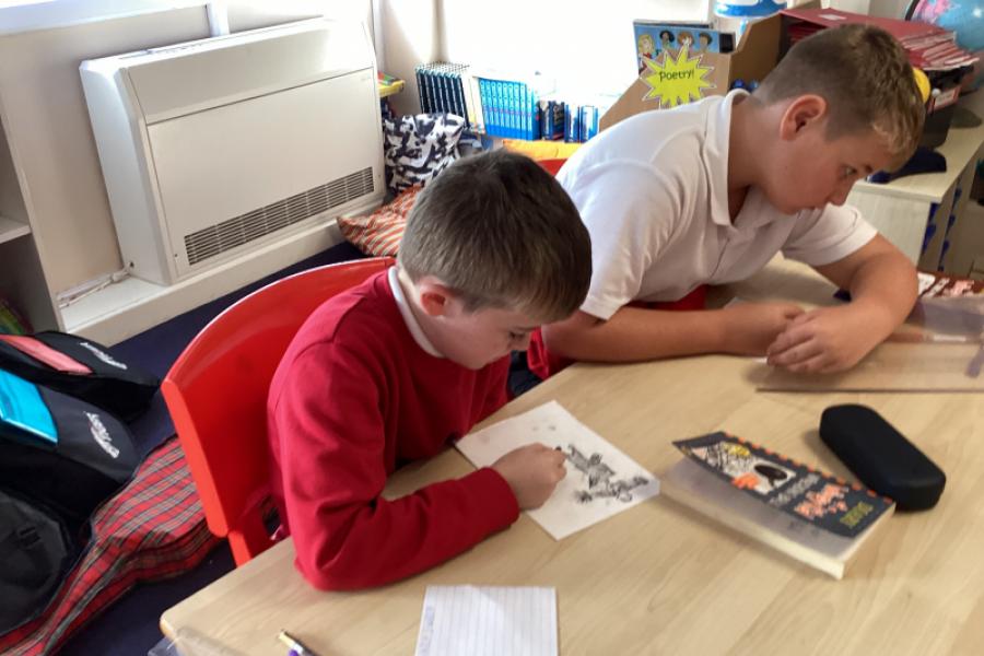 Our brilliant librarian reading at lunchtime with our year 1 pupils.