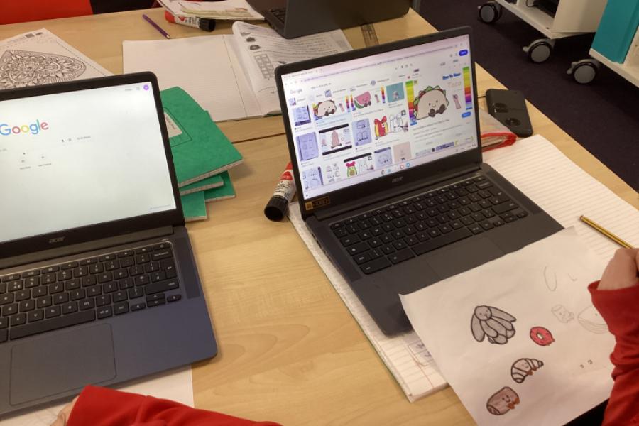 For well-being Wednesday, the class wanted to grab a chrome book to have a calming drawing and colouring session.