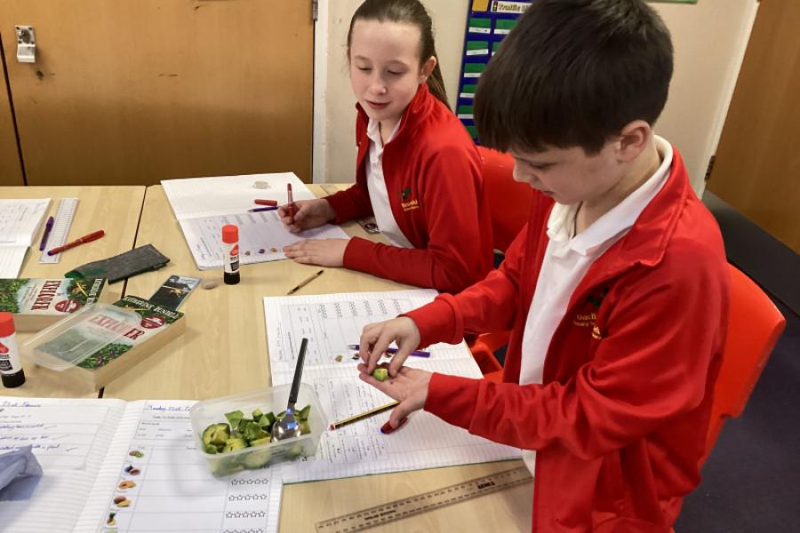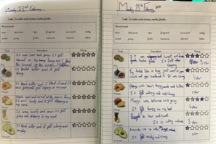 As a hook to our new writing topic (to write a new chapter about a mysterious fruit) the class tried some exotic fruits.