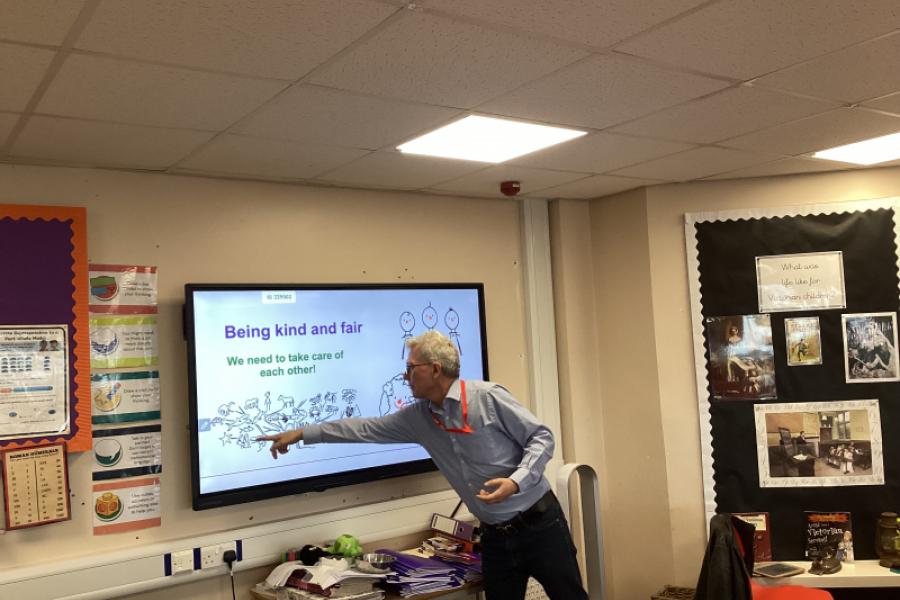 Year 5 were fortunate to welcome a humanist speaker into the class today! Kevin explained how his philosophy was to treat others the way we would like to be treated ourselves. We watched a video about animals helping each other by instinct, which provoked some very interesting debates! Year 5 asked some sensible and thoughtful questions and Kevin was extremely impressed with their behaviour and their enquiring minds! Thank you to Mrs Slate, our RE Leader, for organising our visitor! Mrs Blomeley