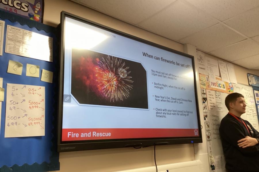 The Greater Manchester Fire Service from Stalybridge came to talk to Year 6 today about the dangers of being out near fireworks. The children had lots of questions and experiences to share with Josh and Connor.