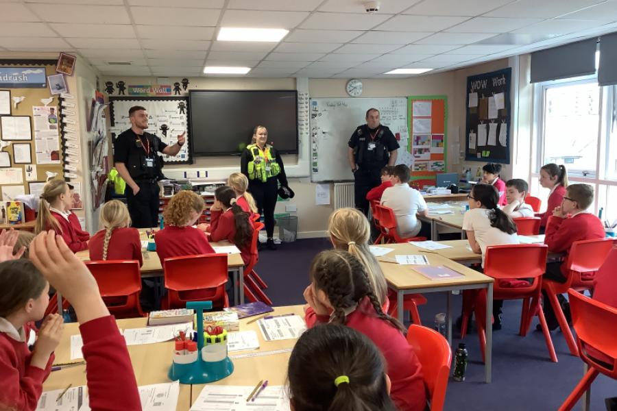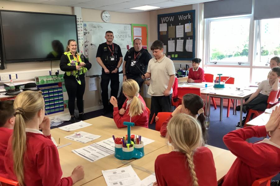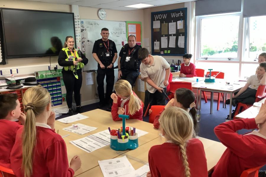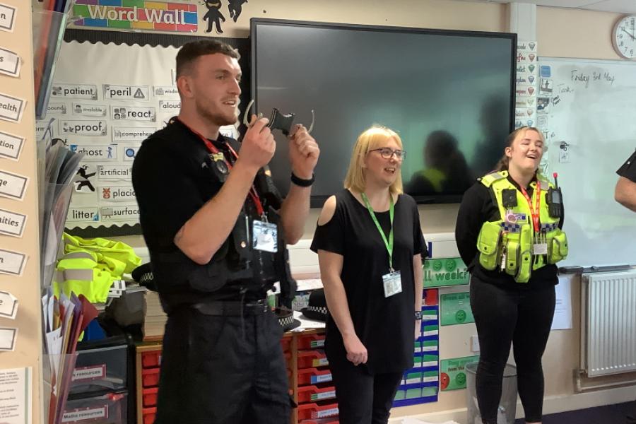 Today GMP visited Year 6 to discuss what it is like to have a career in the police. They discussed the training which is needed before police officers are allowed on duty. They talked about how important it is in all careers for people not to have a criminal record. They shared with us what type of roles they work in and what equipment they carry. The class enjoyed arresting me and putting me handcuffs.