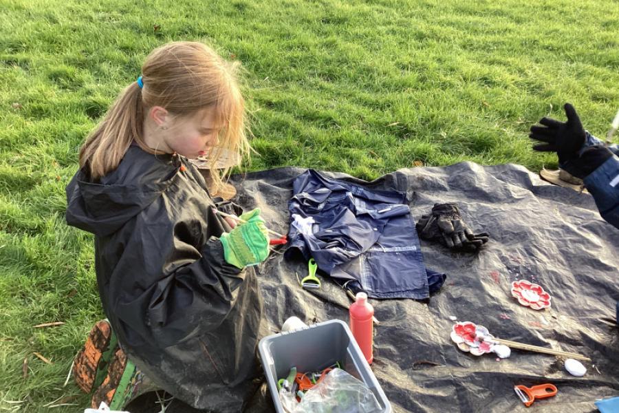 Year 1 loved being outside in the rain and mud! We did a team challenge to make the longest line from forest school resources than relaxed under the shelter.