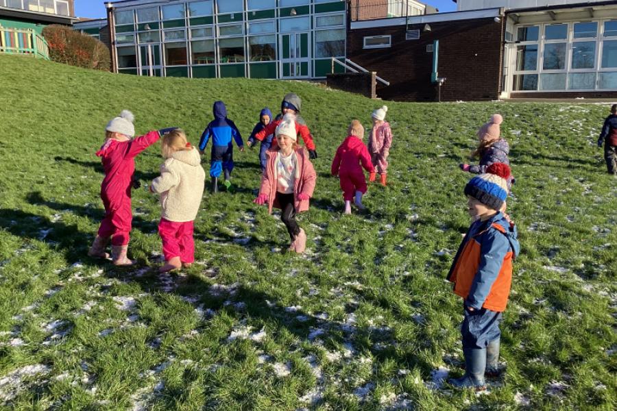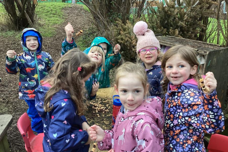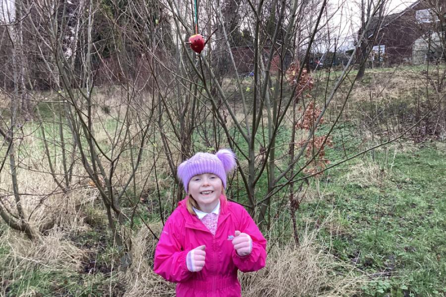 Making fabulous bird feeders ready for the RSPB Big Schools Birdwatch and playing the Sparrow Hawk game to keep nice and warm.