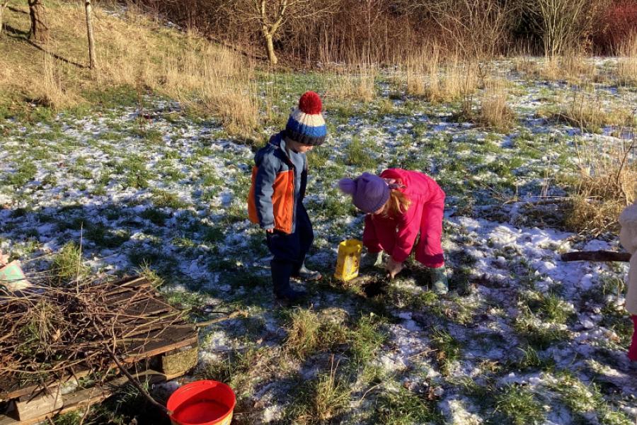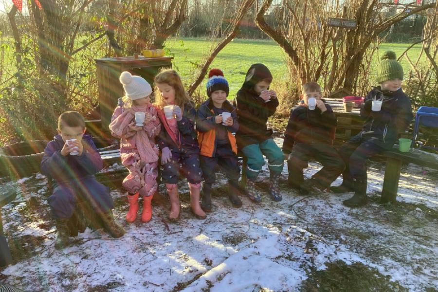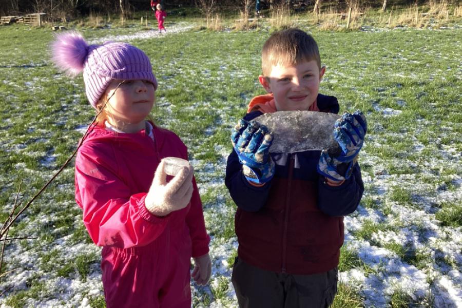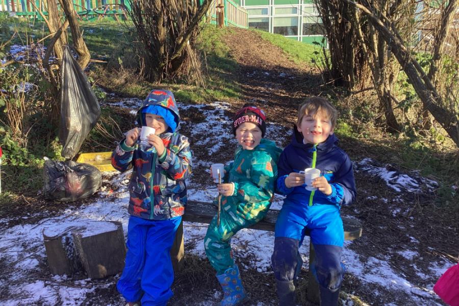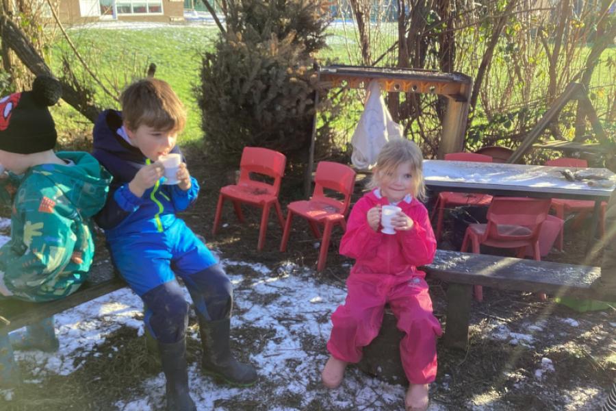 In Forest school this week we found lots of ice sculptures, played the icicle game, made some birds nests and warmed up with some delicious hot chocolate.