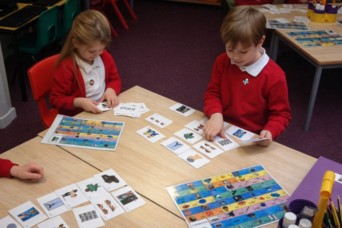 Children are actively engaged in their own learning by taking part in a familiar range of ‘hands-on’ activities using Pupil Sets of word and picture cards. These activities provide opportunities for children to practice reading and also develop key skills: how to share, take turns, listen to each other and collaborate.